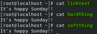 삭제 테스트 전 cat 명령을 통해 링크 원본 파일 데이터를 잘 가리키는 것 확인.