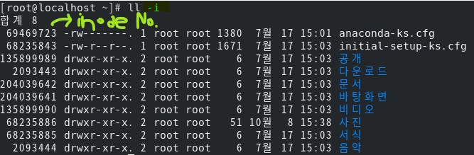 파일 조회할 때 inode까지 확인하려면 -i 옵션 주면 된다.