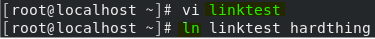 원본파일과 같은 inode를 공유하기 때문에 파일명을 제외하면 원본파일과 완전히 똑같다. 원본파일이 삭제되어도 하드링크와 연결된(linked) inode는 남아있기 때문에, 하드링크는 온전하다. 디렉터리는 하드링크를 만들 수 없다.