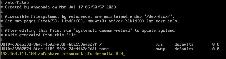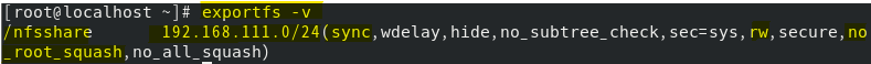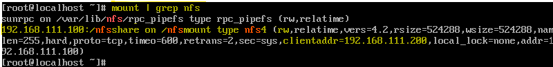 mount -t nfs 192.168.111.100:/nfsshare /nfsmount