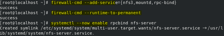 firewall-cmd --add-service={nfs3,mountd,rpc-bind}