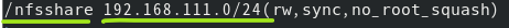- rw : 해당 호스트에 read/write 권한 부여 <->ro : read only