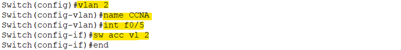 Switch (config-if) # switchport access vlan 2